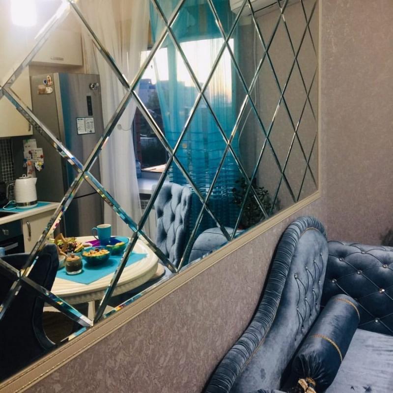 Использована серебристая зеркальная плитка "вытянутый ромб".